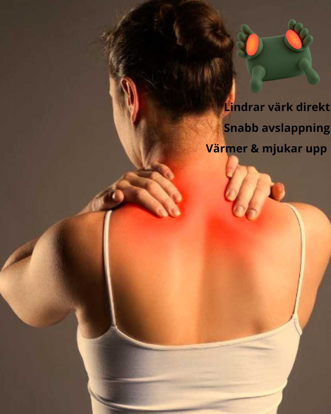 Massagehanden ger dig en lyxig, varm och djupgående massage — när du vill och var du vill. Den är lätt, smidig och känns som en riktig massör som hjälper dig att släppa stress och spänningar på bara några minuter.